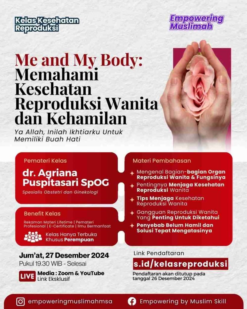 Kami menyediakan sebuah kelas online dengan pemateri dokter profesional dibidangnya, untuk membahas seputar kesehatan reproduksi wainta, penyebab belum hamil dan solusinya.