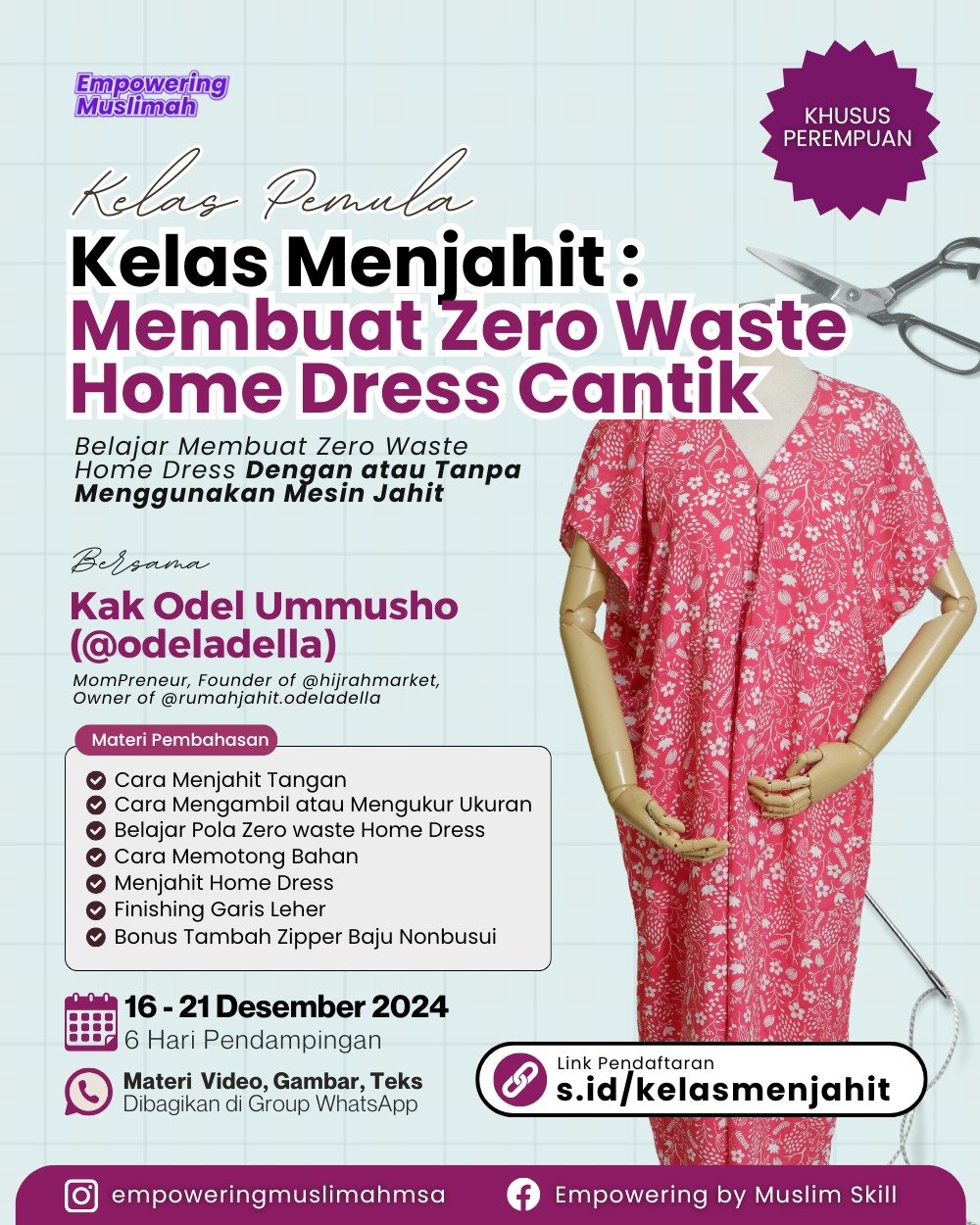 Jadwal Kelas Menjahit16 Desember - 21 Desember 2024