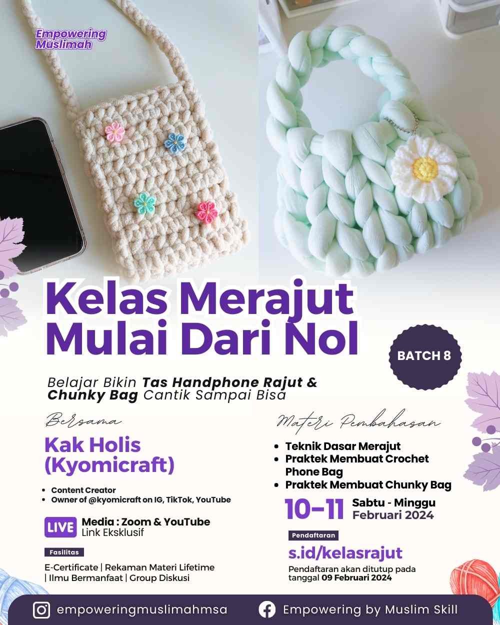 Kursus Merajut Tingkat Dasar Batch 8: Belajar Bikin Phone Bag & Chunky Bag Cantik Sampai Bisa